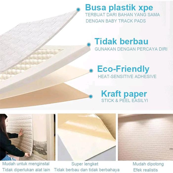 Harga Paket 10 Lembar Wallfoam 70 x 77 Cm Motif Bata High Quality Wallpaper 3D Motif - (10 LEMBAR) - PUTIH 70 x 38