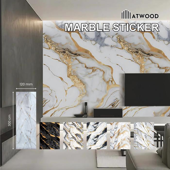 Wallpaper Marble Sticker Dinding 120x300cm Marmer Stiker Roll Foam PVC Dekorasi Wallpanel Premium - Golden Vein