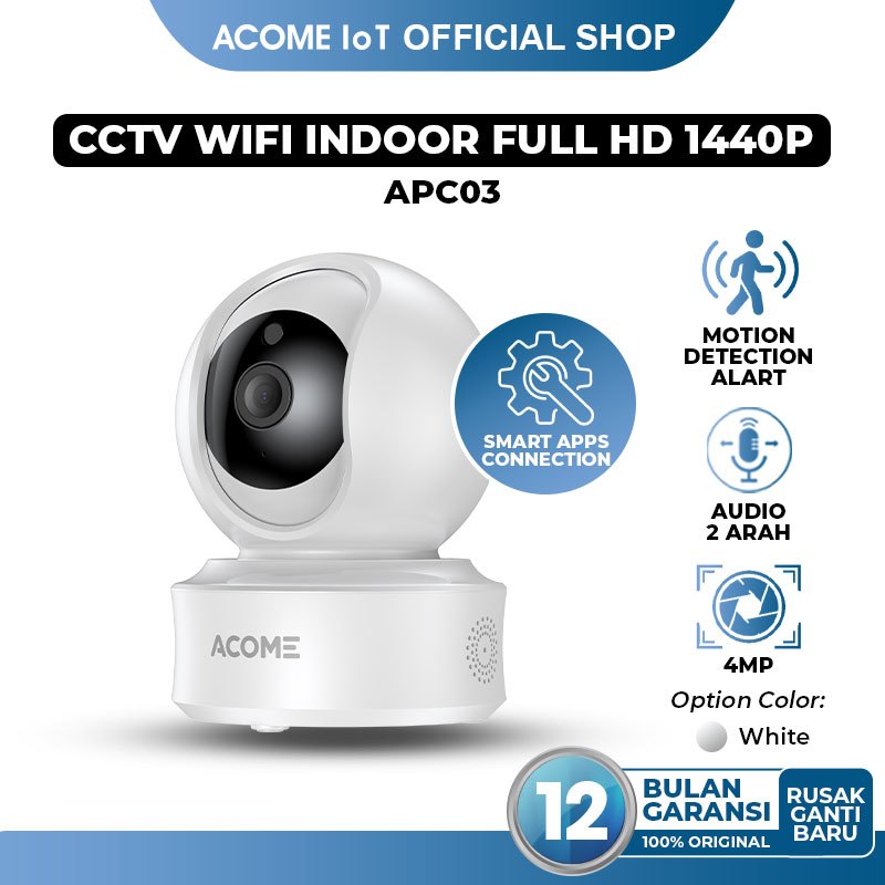 ACOME IoT APC03 Camera CCTV WiFi Indooroutdoor No Blind Spot Audio 2 Arah Resolusi Full HD 1440P4MP Auto Deteksi Gerak Tetap Terang dalam Mode Malam