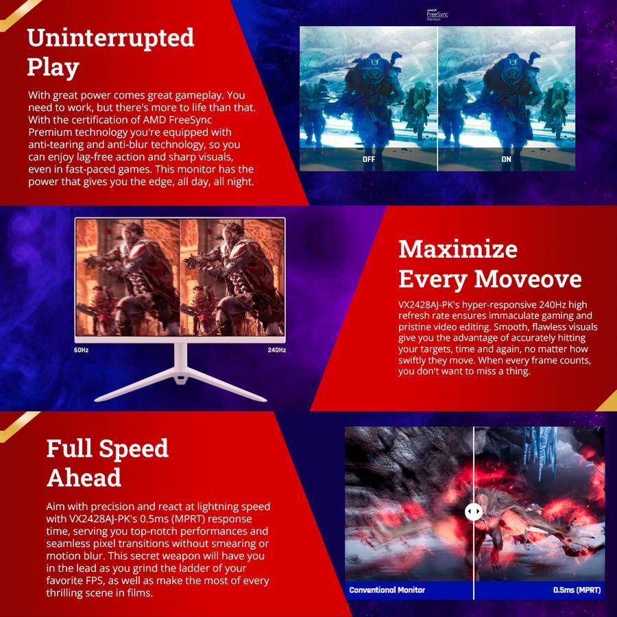 Monitor VX2428AJ-PK 24 Inch 1920x1080 IPS 240Hz Speaker Ergonomics PINK