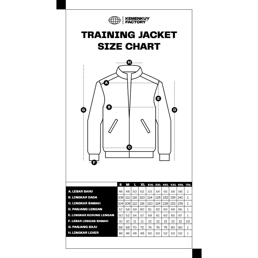 XS, S, M, L, XL, 2L, 3L, 4L, 5L, 6L