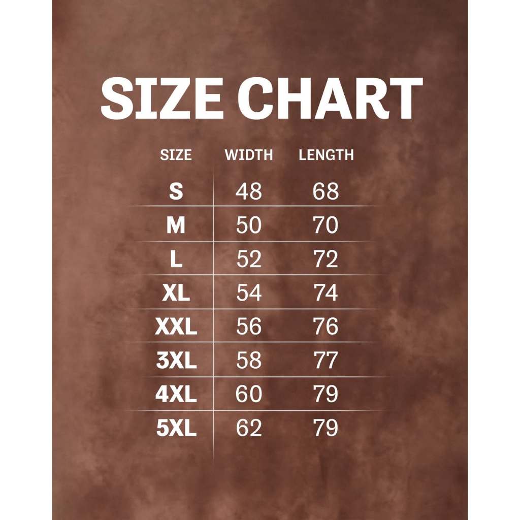 S, M, L, XL, 2XL, 3XL, 4XL, 5XL