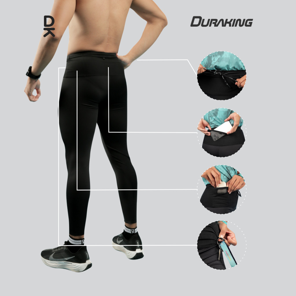 Legging Panjang Lari Pria Nilon Termasuk Sabuk Lari Celana Panjang Olahraga Ketat Nyaman