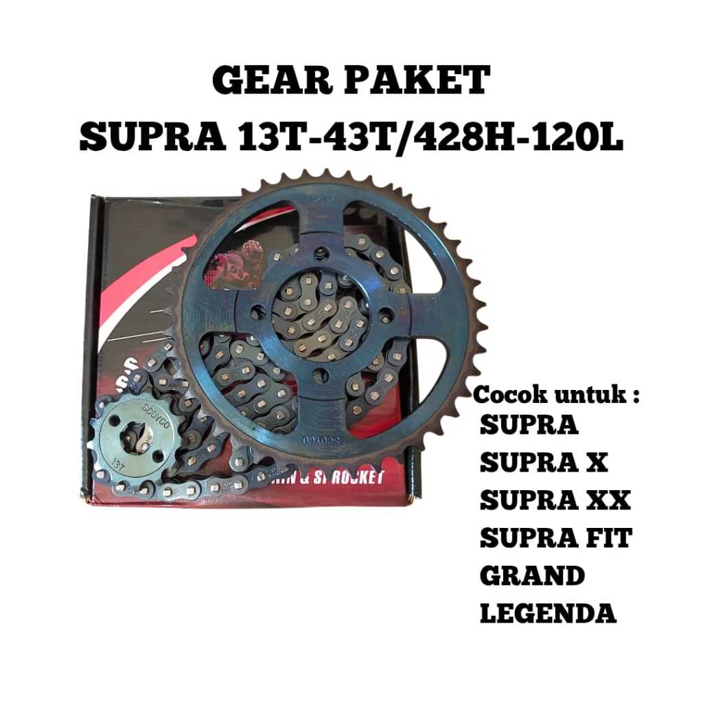 GEAR PAKET GIGI TARIK KOMPLIT GEAR SET SEPUHAN SUPRA SUPRA X SUPRA FIT GRAND LEGENDA 13T43T428H120L SCOYCO