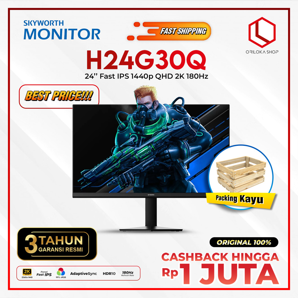 Skyworth H24G30Q Monitor Gaming LED 24 Inch 24" 2K 180Hz Fast IPS Panel - Garansi Resmi