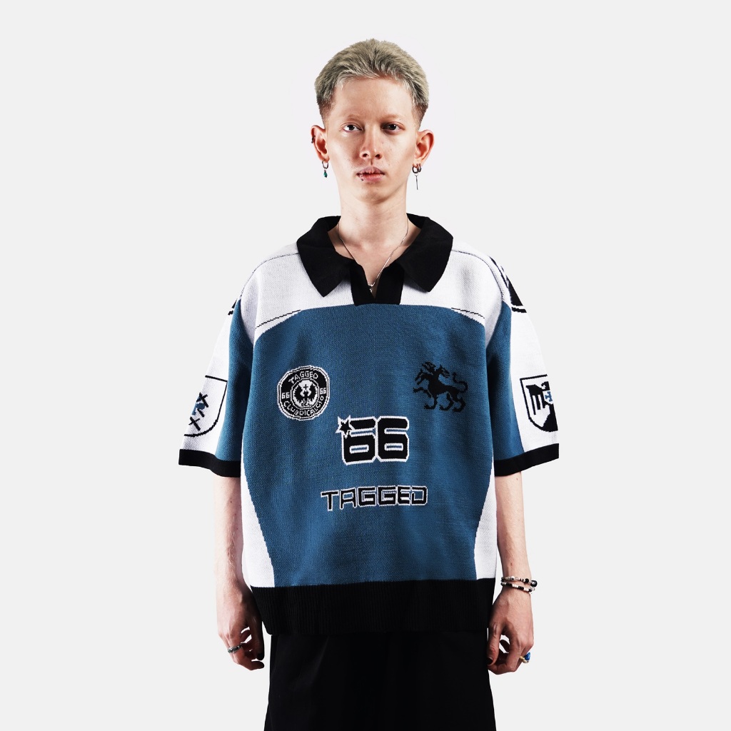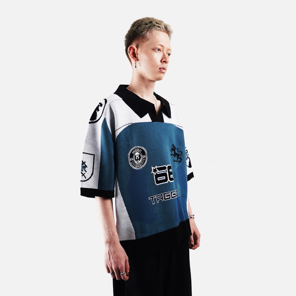 Tagged Mini Drop Dusty Blue Knit Jersey Pria
