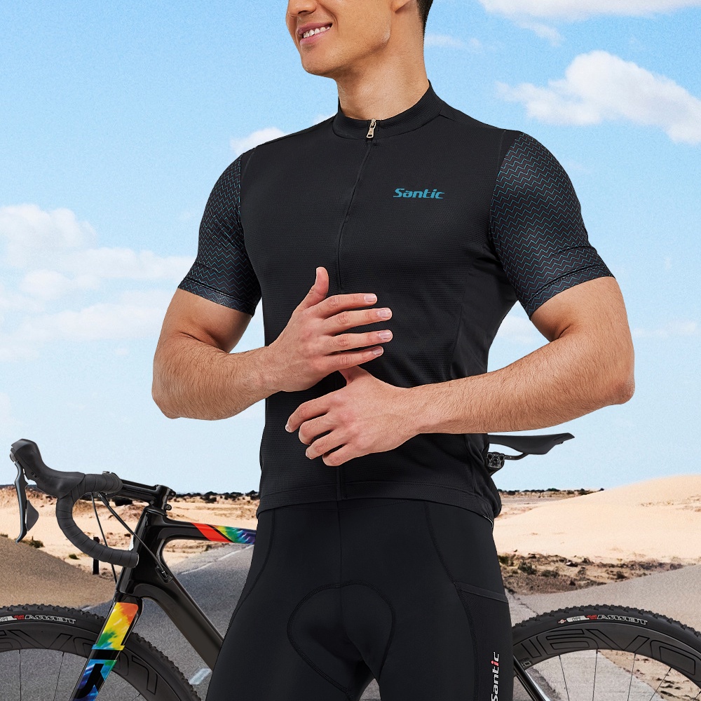 Santic Jersey Bersepeda Pria Kaos Lengan Pendek Sepeda Jalan Bernapas Cepat Kering KM1C02221