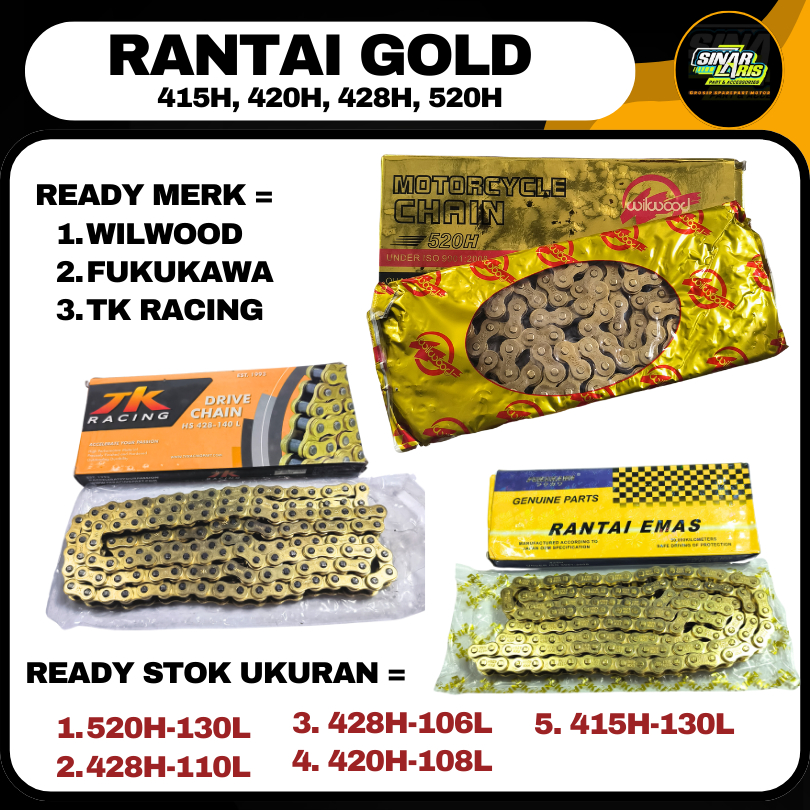 RANTAI MOTOR TK RACING FUKUKAWA WILWOOD 520H 428H 420H 415H 110L 128L 140L 9OLD SSS SINAR LARIS