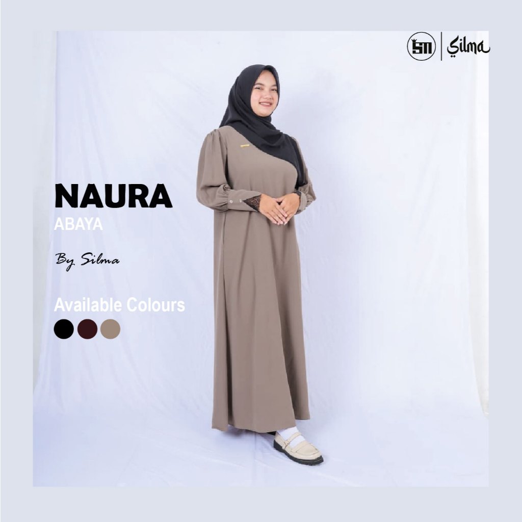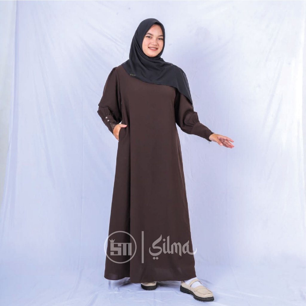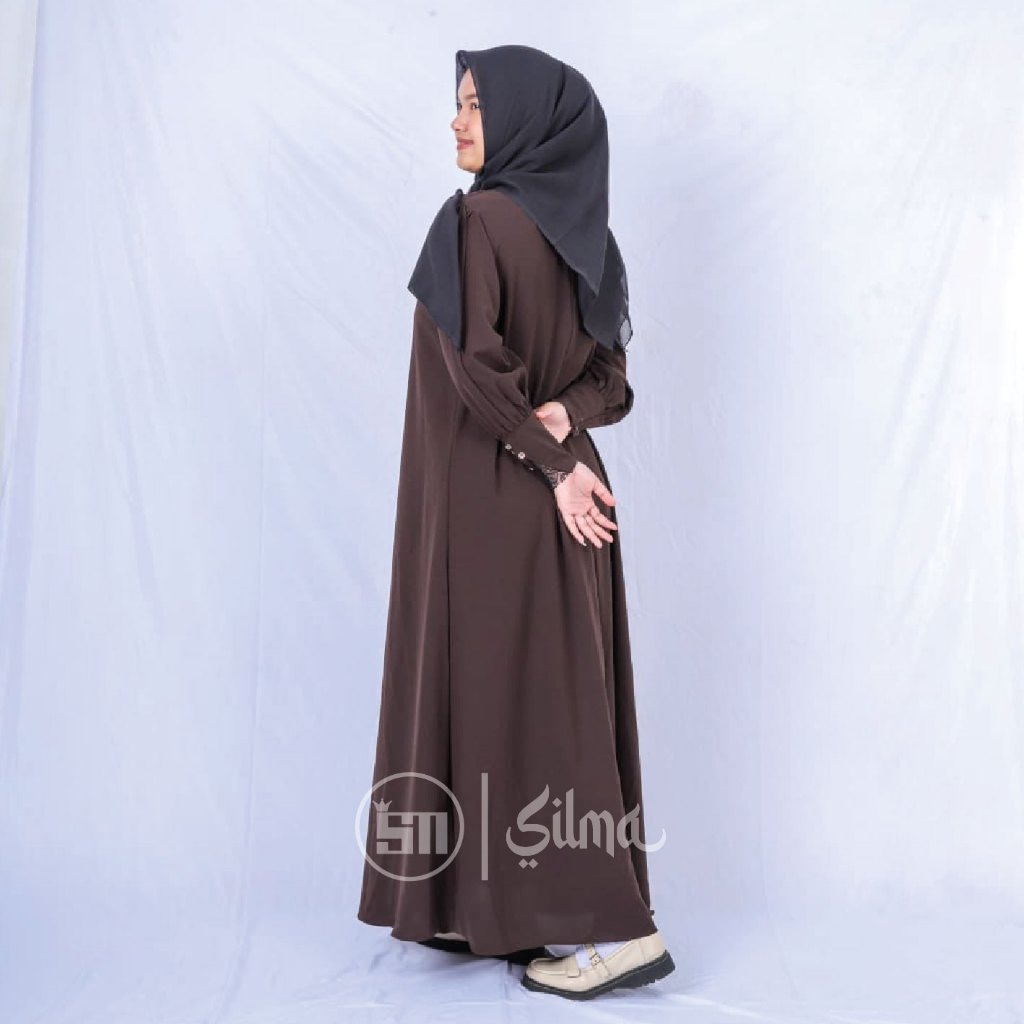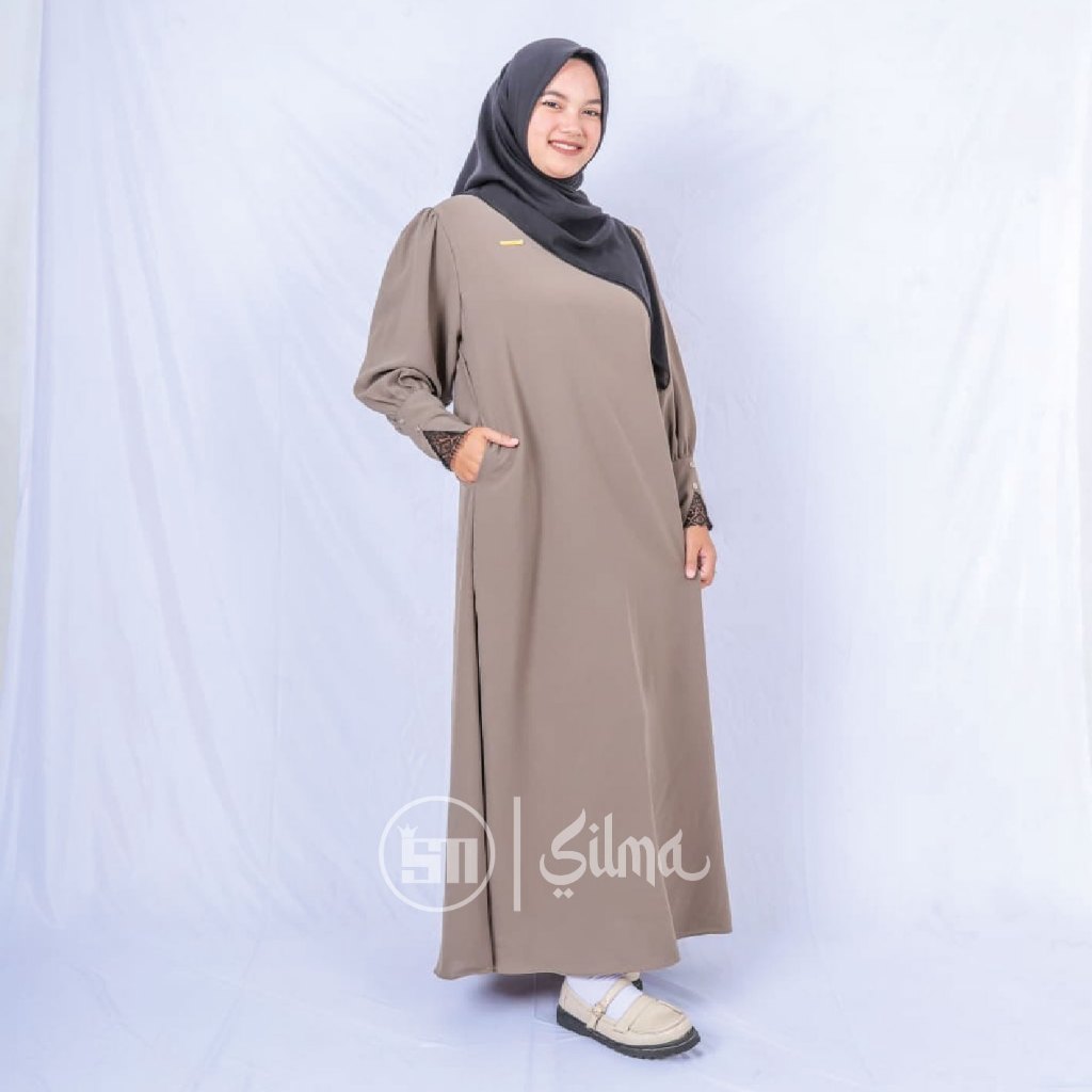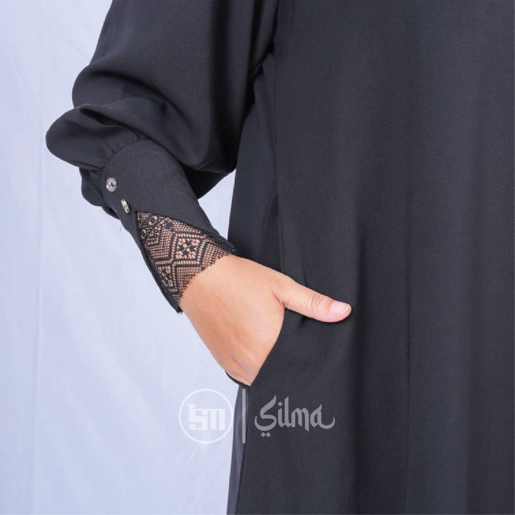 Silma-Naura Gamis Abaya lengan balon mengembang dengan aksen renda minimalis