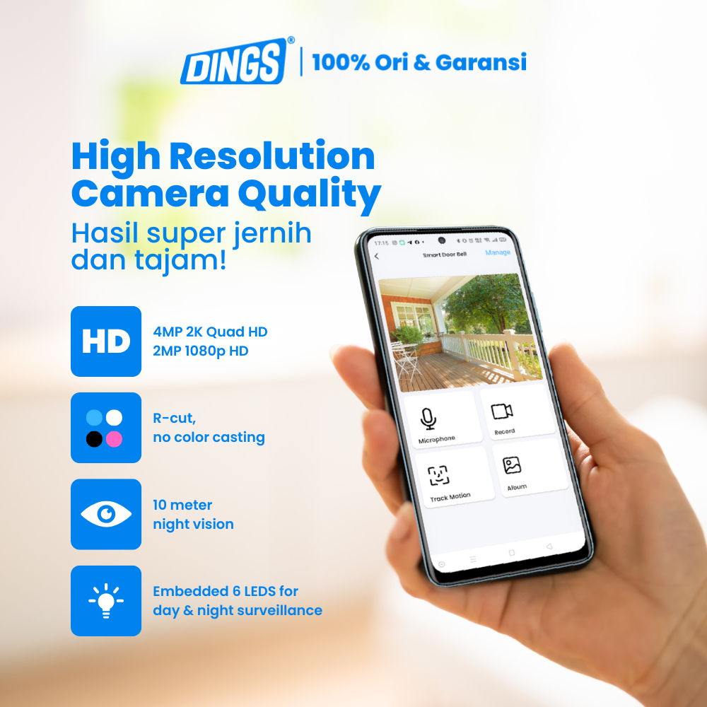DINGS IP Camera Smart CCTV WiFi Indoor 2K Super Full HD ONVIF PTZ Support NVR, MicroSD & IoT Smart Home Automation