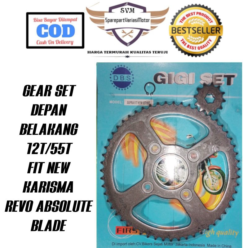GEAR GIR SET 55T FIT NEW REVO ABSOLUTE BLADE KARISMA SUPRA X 125 GEAR DEPAN BELAKANG 12T55T