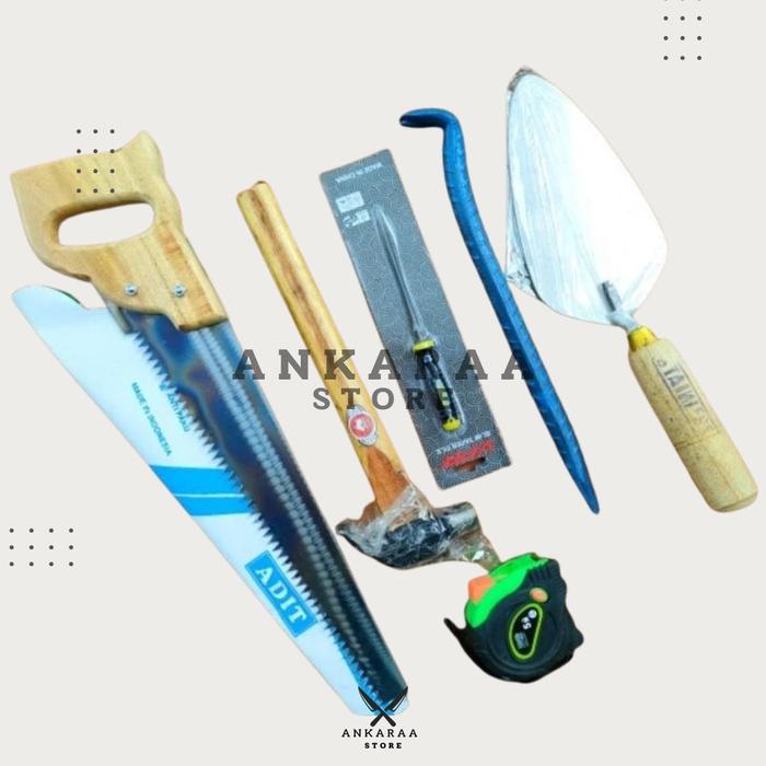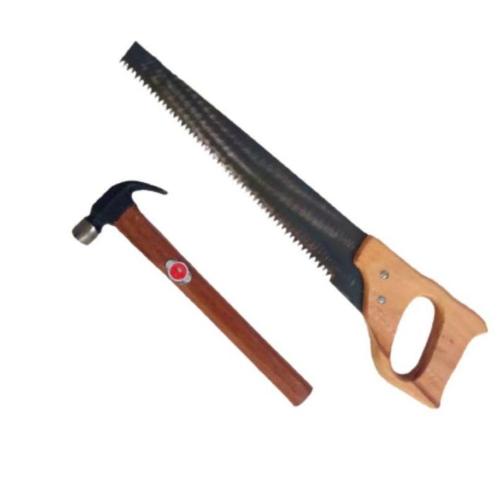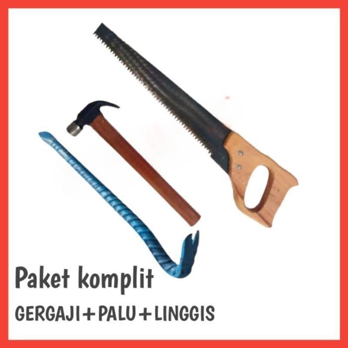 PAKET TUKANG MURAH -GERGAJI KAYU BAJA ASLI SIAP PAKAI -PALU KAMBING -LINGGIS MINI -METERAN 3M - GERGAJI 16 INCH