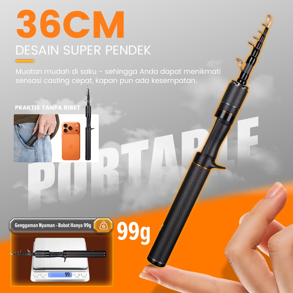 SEAHUNTER Black Arrow Tele Joran Pancing Telescopic Rod FUJI O Guide 36CM Collapsed Ultra-Light Carbon Grip Casting/Spin