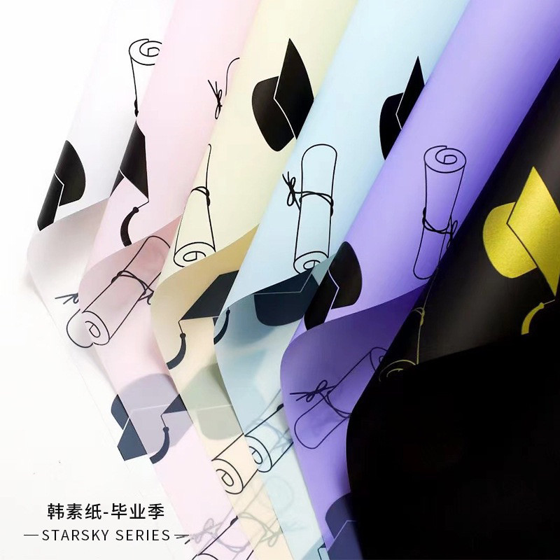 [ 5 LEMBAR ] Kertas Bunga Cellophane Warna Motif Graduation Topi Toga Paper Flower Wrapping Paper Kertas Buket Bunga AF