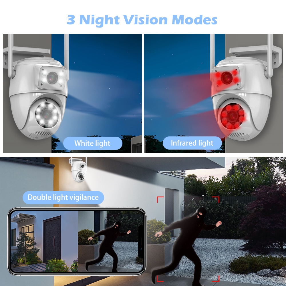 GUOANvision 8MP Kamera CCTV IC SEE Nirkabel Luar Ruangan DualLensa Suara AI Deteksi Manusia Alarm