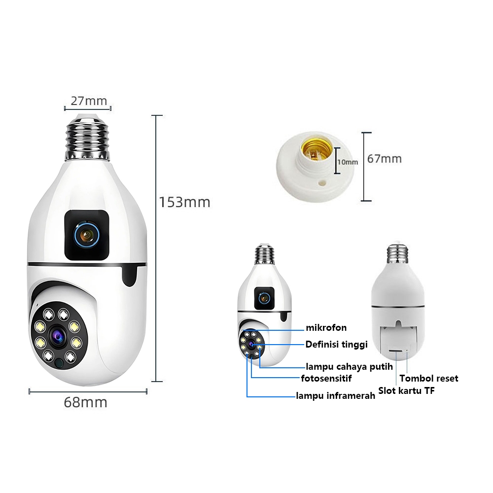 V360 Dual Lwns cctv wifi jarak jauh lewat hp 360°PTZ panggilan Home Security IP Camera Kamer Lampu SA7