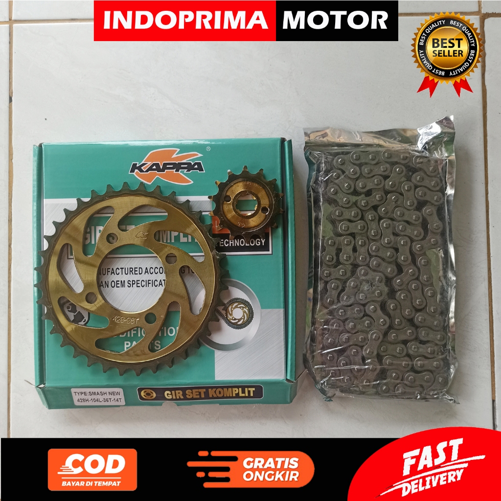 KAPPA GEAR SET KOMPLIT SMASH NEW. GIGI TARIK 9OLD DAN RANTAI SMASH OLD, SHOGUN 125