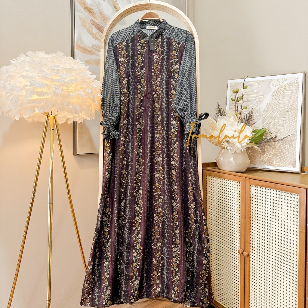 Ellena Dress Gamis Wanita Rayon Motif Mix Rayon Jaguard Lembut Adem Nyaman Daily Bumil dan Busui Friendly By Irmalaila