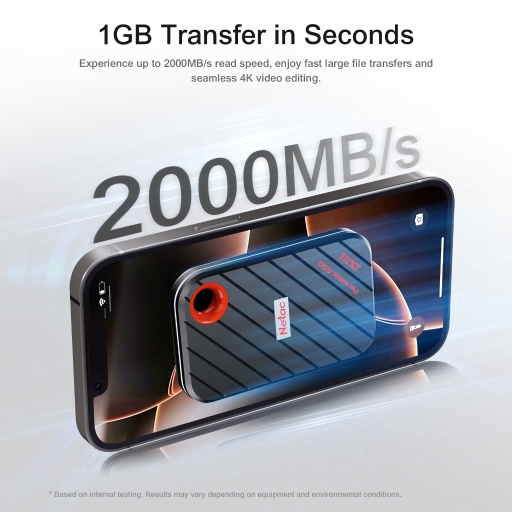 Netac ZX20 II Magnetic External Portable SSD 512GB/1TB/2TB USB 3.2 Gen 2x2 Type-C up to 2000MB/s with USB-C to A Cable a
