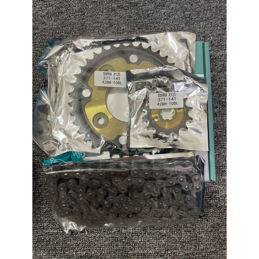 GEAR SET GIR SET PAKET RANTAI KAPPA HONDA SUPRA X 125 HELM IN INJEKSI FI KYZ 428H 108L GEAR DEPAN 14T GEAR BELAKANG 37T RANTAI KUALITAS ORIGINAL RDM