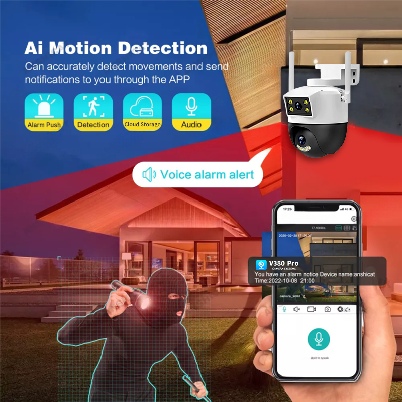 CCTV V380 pro Outdoor WiFi 8MP Dual Lens Waterproof IP Camera 360° IR Night Vision PTZ Kamera
