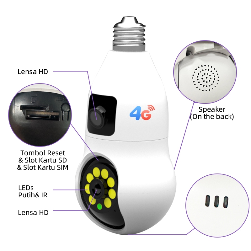 ULINK E27A4G 4MP CCTV Indoor Dual Camera HD BULB PTZ Audio 2 Arah Pantau HP dari Jarak Jauh