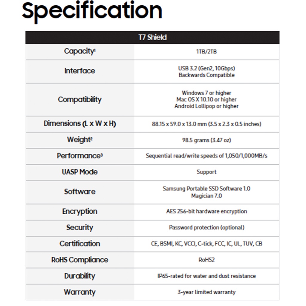 T7 Shield - 1TB, T7 Shield - 2TB, T7 Shield - 4TB, T7 - 1TB, T7 - 4TB