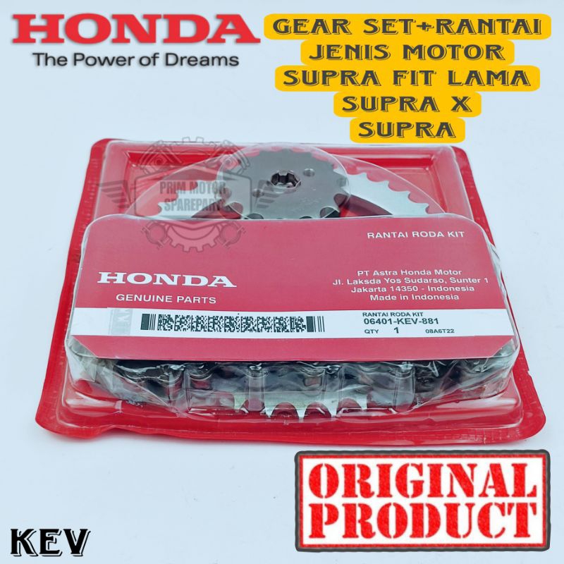 GEAR SET RANTAI ORIGINAL KEV HONDA SUPRA, SUPRA FIT LAMA, SUPRA X KUALITAS ASLI HONDA AHM