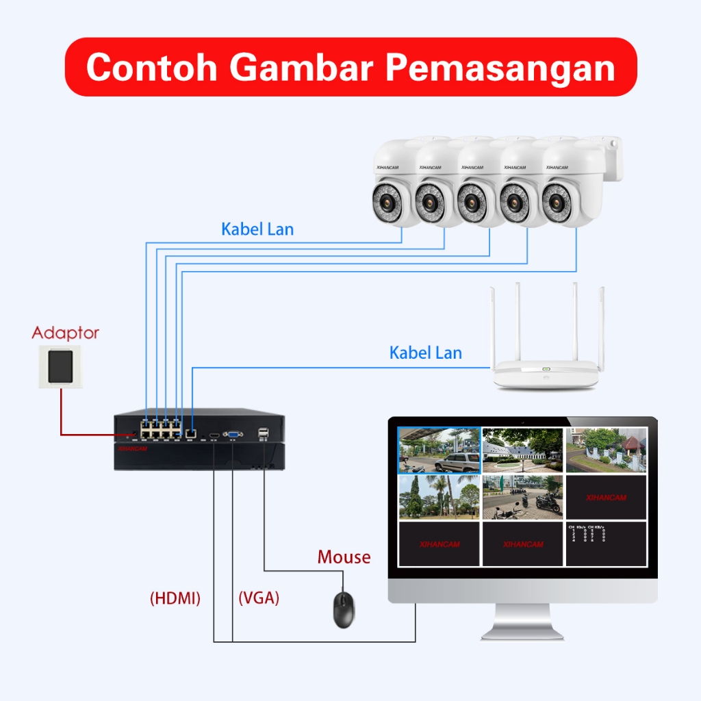 XIHANCAM Kamera POE CCTV Outdoor Waterproof IP Kamera 2MP 360 PTZ CCTV POE Jarak Jauh Lewat HP