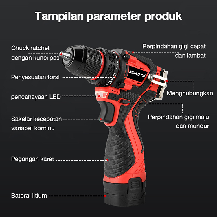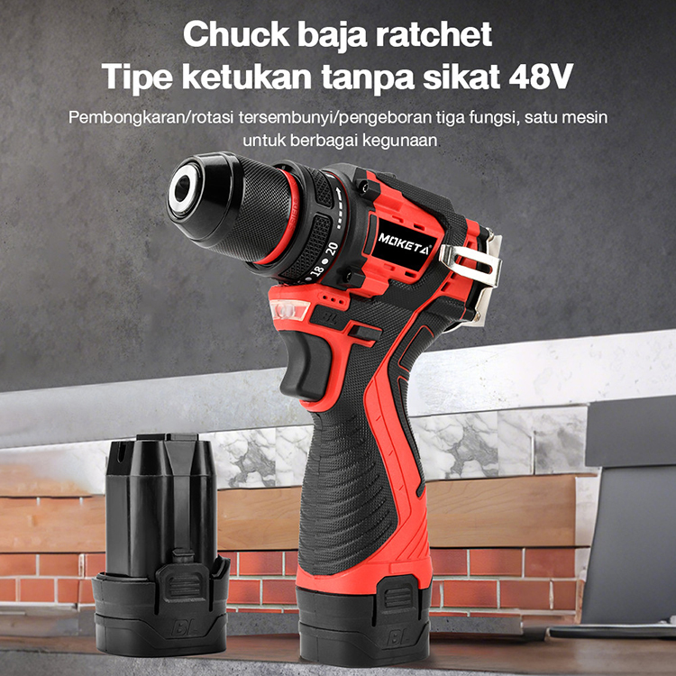 MOKETA 48V Brushless Cordless Drill Rechargeable Screwdriver Hand Drill Power Tools