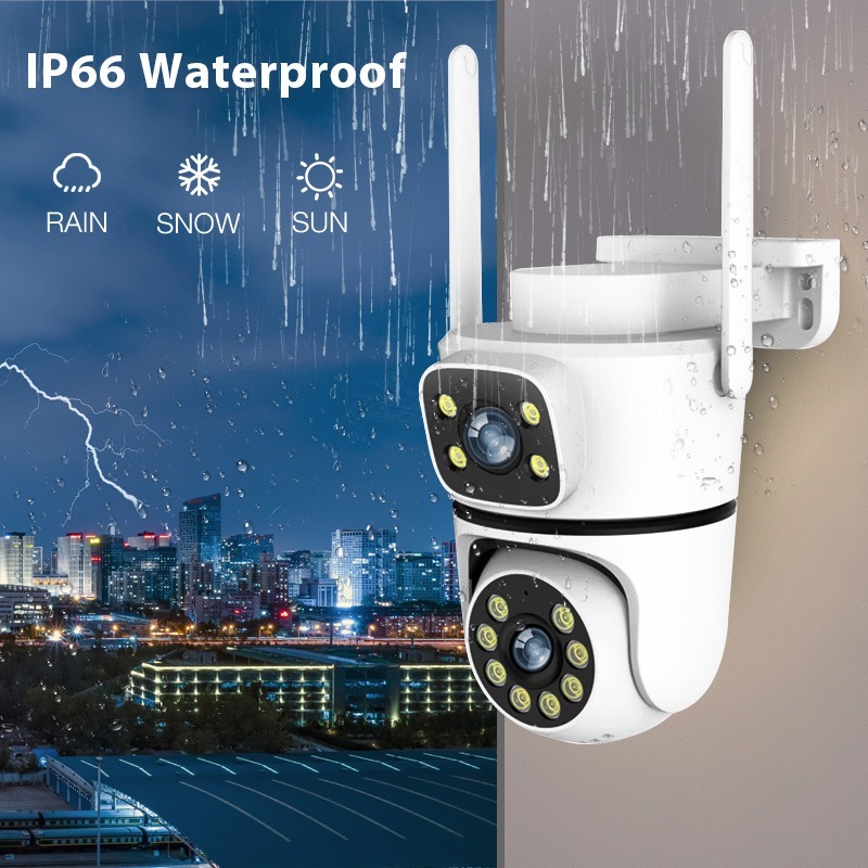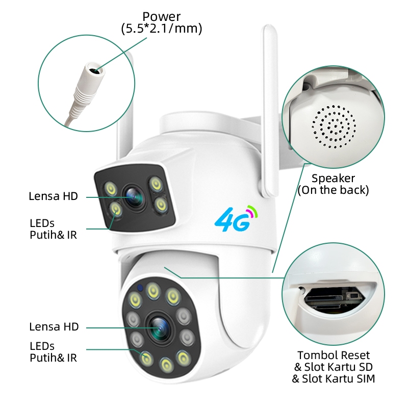 CCTV 4G Dual Lens Outdoor Tanpa WiFi Kamera Tahan Hujan Malam Jelas Audio 2 Arah Deteksi Gerakan