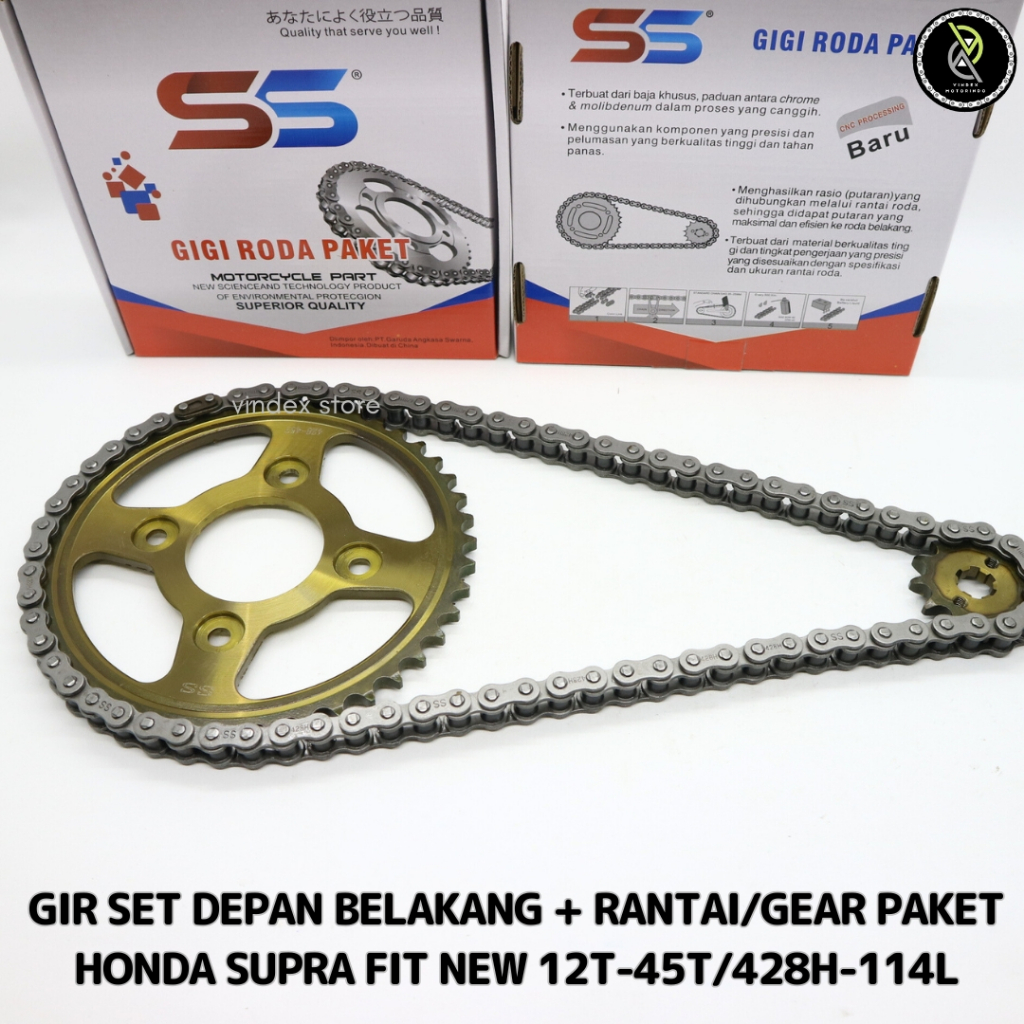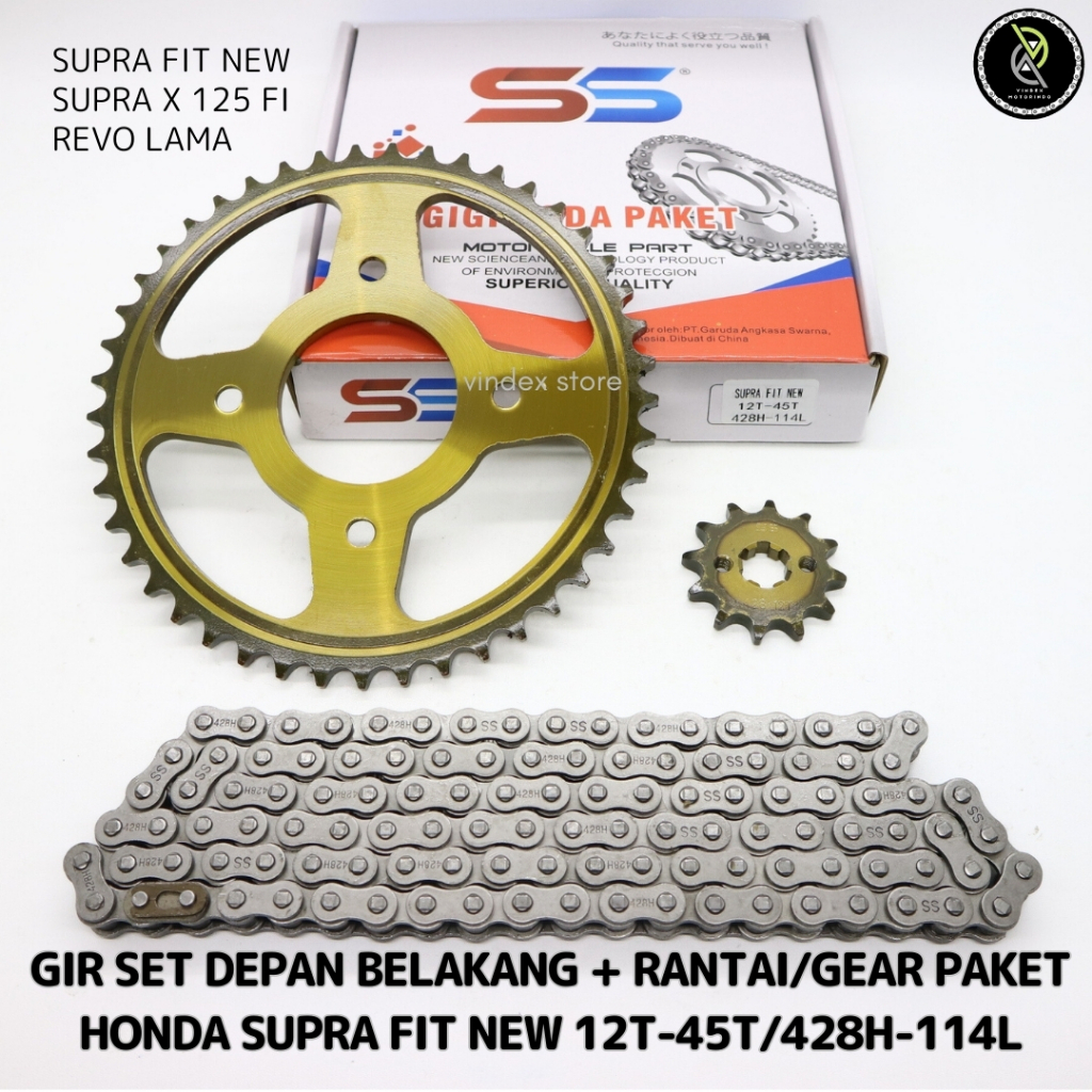 GEAR PAKET GIR SET RANTAI SUPRA FIT NEW SUPRA X 125 REVO LAMA 12T45T 428H114L