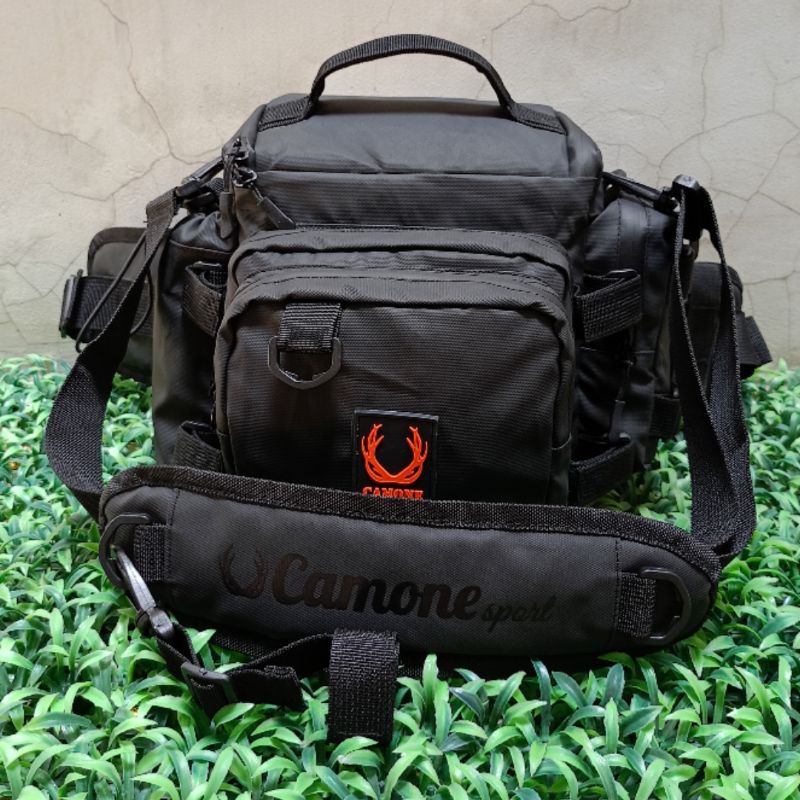 Tas pancing/ tas casting sling bag/tas joran/free 1 buah soft frog