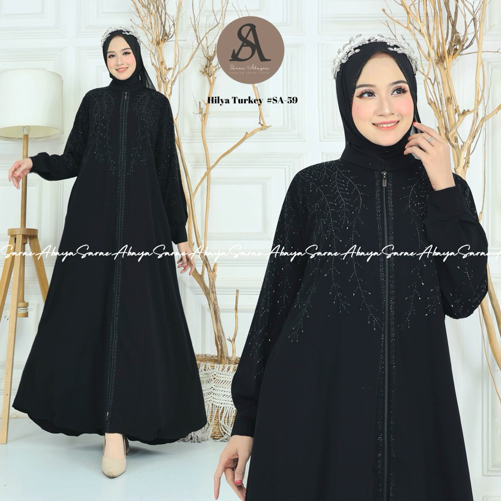 Sarae Abaya Turkey Premium Hilya SA-59 Gamis Jetback Payet Arab Wanita Hitam Mewah Elegan Dubai