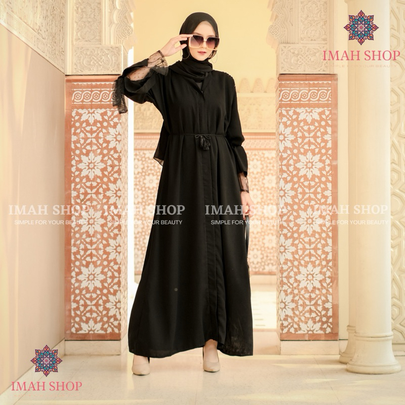 Abaya Hitam Turkey Gamis Syari Muslimah Bahan Jetblack Hitam Kombinasi Tile Polkadot Imah Shop Dress Arab Saudi 969