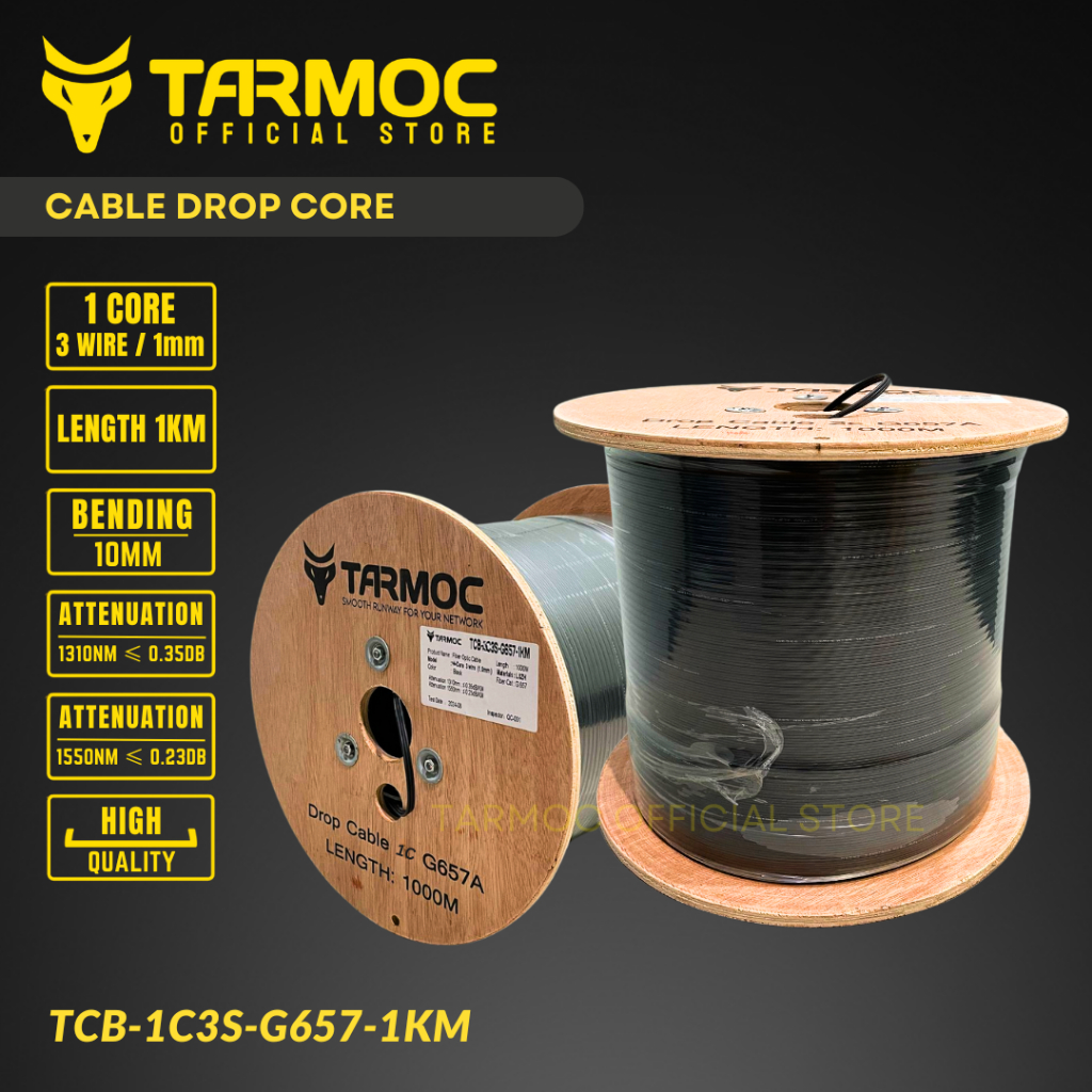 Tarmoc TCB-1C3S-G657-1KM | Kabel Dropcore 1 Core 3 Seling 1000m | Kabel FO Drop core Single Mode