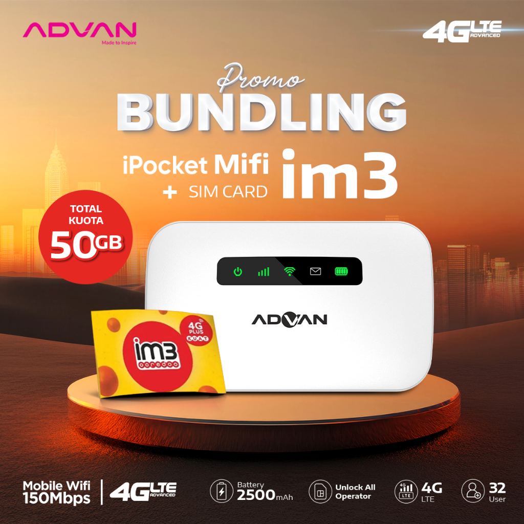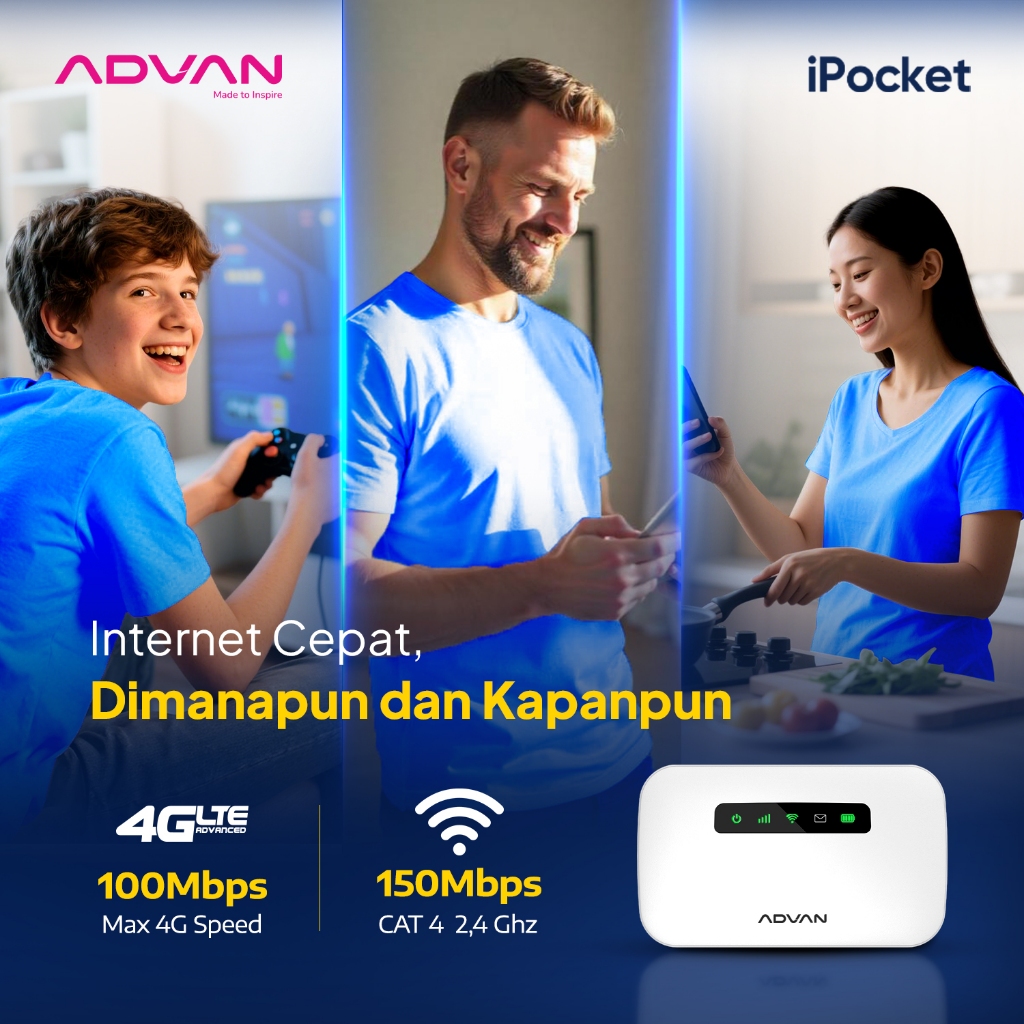 ADVAN Ipocket MIFI MF01 Modem | 4G LTE | Unlock All Operator | Baterai 2500 mAh | TKDN | Garansi Resmi 1 Tahun