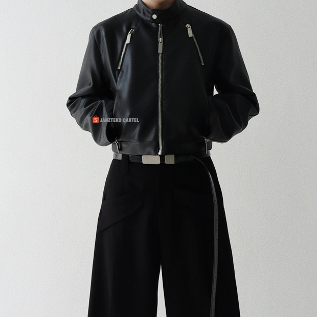JNK x JERI Jaket Crop Boxy Granger Mafia Semi Kulit Sintetis Jaket Pria Keren Jaket Pria Work Jaket Jaket Parasut Pria