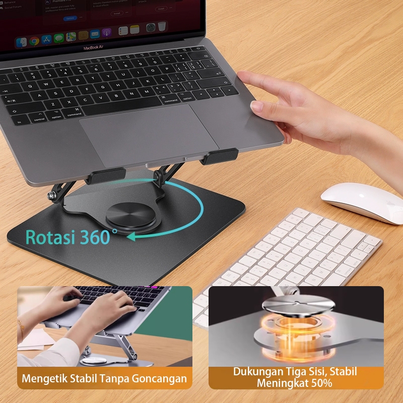 Akona Stand Laptop Rotasi 360° Aluminium Fan Cooler Cooling Pad Laptop Lipat Portable Silent 2 Kipas Pendingin Laptop Fo