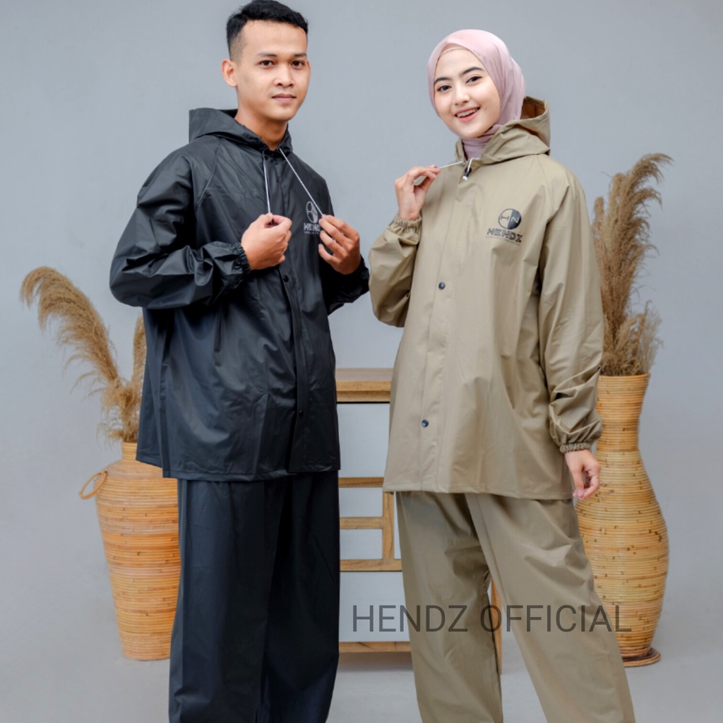 Jas Hujan Anti Rembes Raincoat Mantel Hujan Pria Wanita Bahan Karet PVC Berkualitas ORIGINAL HENDZ