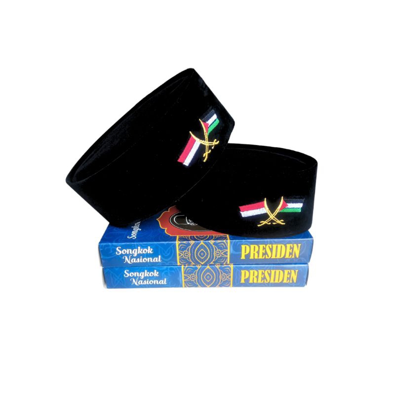 Peci Songkok Kopiah Hitam Bordir Bendera Indonesia & Palestina