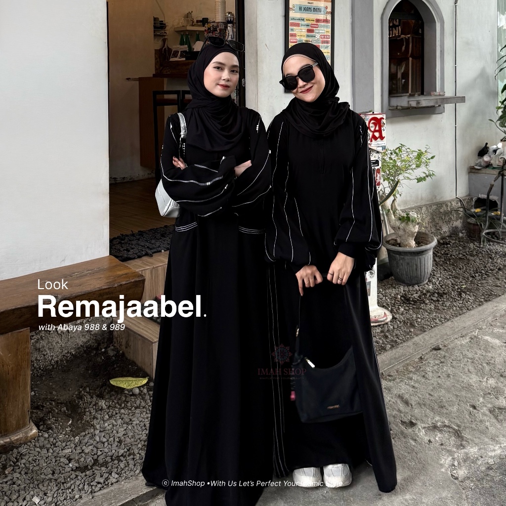Abaya Hitam Turkey Gamis Syari Muslimah Bahan Jetblack Hitam Kombinasi Mutiara Imah Shop Dress Arab Saudi 988 989