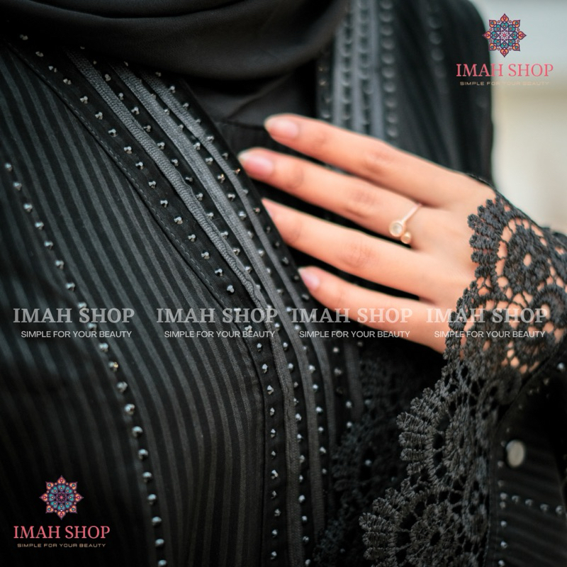 Abaya Hitam Turkey Gamis Syari Muslimah Bahan Jetblack Hitam Kombinasi Renda Imah Shop Dress Arab Saudi 951