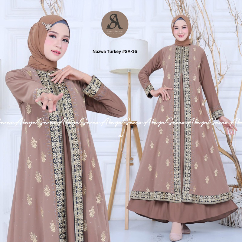 Sarae Abaya Turkey Premium Nazwa SA-16 Gamis Bordir Payet Ceruty Turki Hitam Mewah Elegan Ceruti