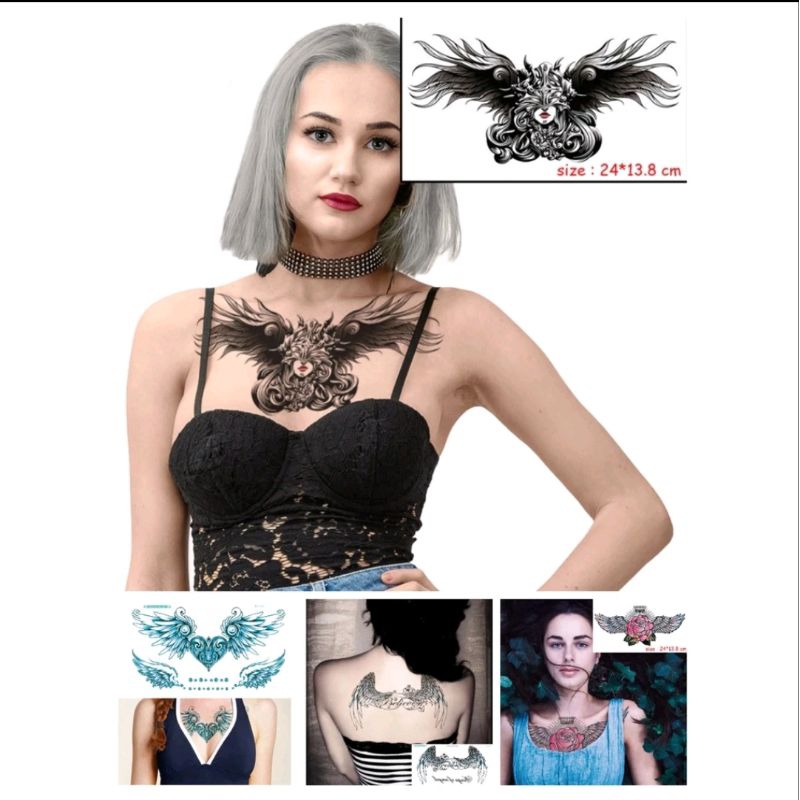 Tato Temporer Tahan Lama 2-7 Harian Anti Air - Tato Temporer Punggung Dada Pinggang Perut Burung Hantu Panjang Palsu Say
