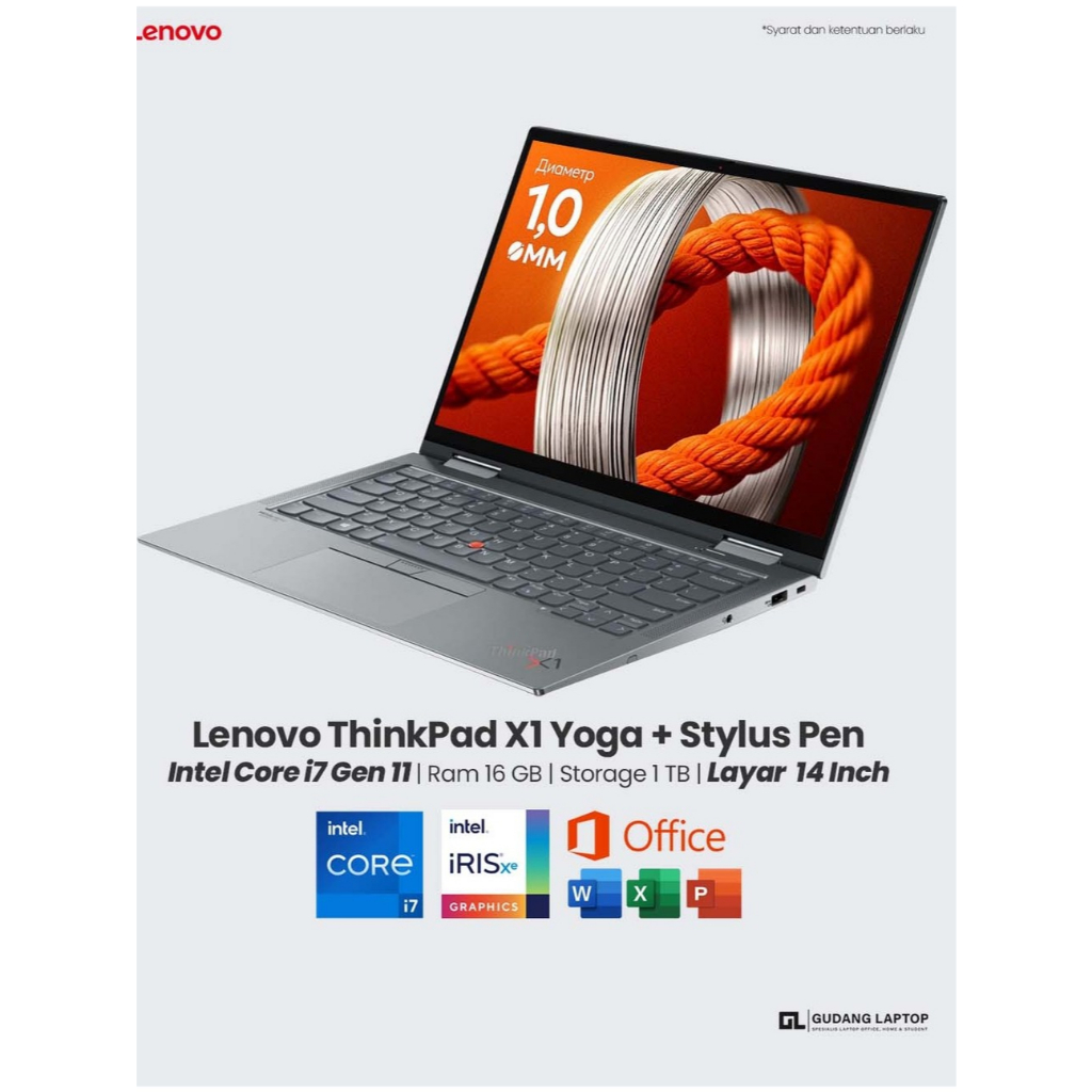 Laptop Lenovo Thinkpad X1 Yoga Gen 6 Core i7 Gen 11 Ram 16 GB SSD 1 TB Layar 14 inch Touchscreen 2 in 1 Flip 360 + Stylu