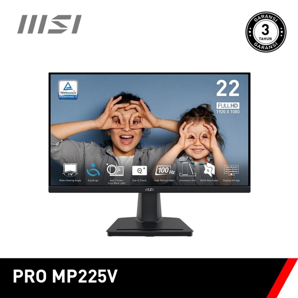 MONITOR MSI LED PRO MP225V 22 INCH 22" FULL HD IPS USB HDR ERGO VESA HDMI VGA DISPLAY LAYAR KOMPUTER GAMING ORIGINAL