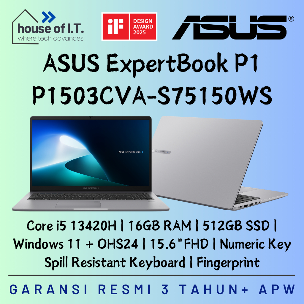 ASUS EXPERTBOOK P1 P1503CVA-S75150WS - i5 13420H 16GB 512GB W11 OHS 15.6"FHD 3Y - Garansi Resmi - Asus P1503CVA i5