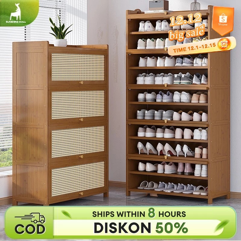 Rak Sepatu Rotan Lemari Sepatu Kayu Jaring Bernapas Rak Lemari Sepatu Tertutup Serbaguna