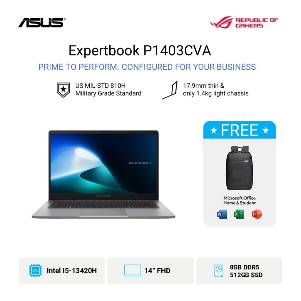 ASUS EXPERTBOOK P1403CVA S65851WS - I5 13420H 8GB 512GB WINDOWS 11+OFFICE 14.0FHD FINGERPRINT